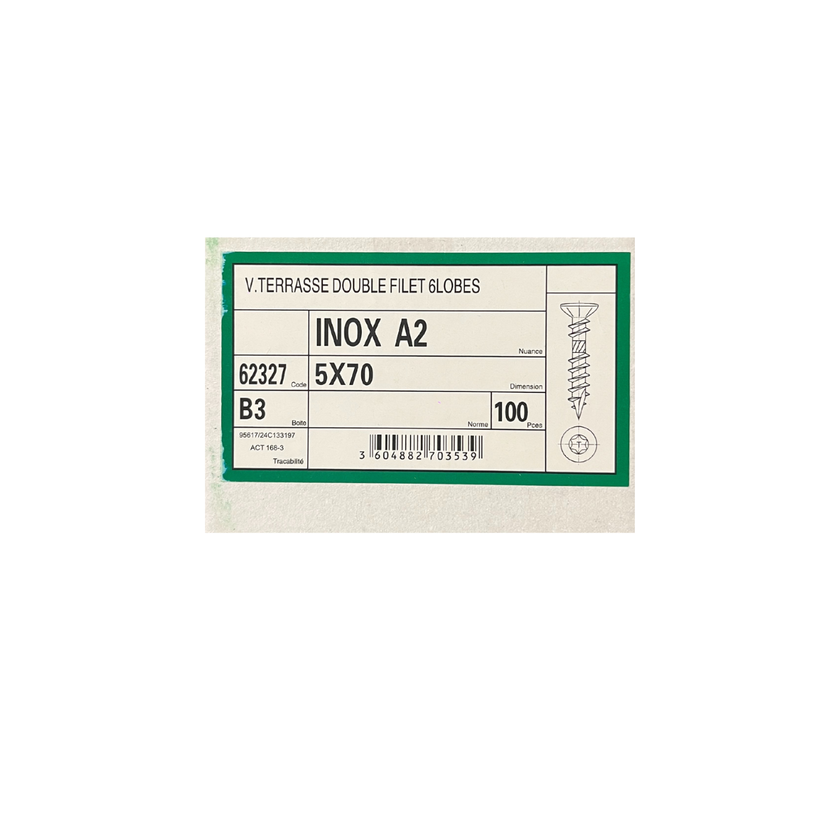 Vis Terrasse Tête Fraisée Réduite Torx 17 Inox A2 5x70